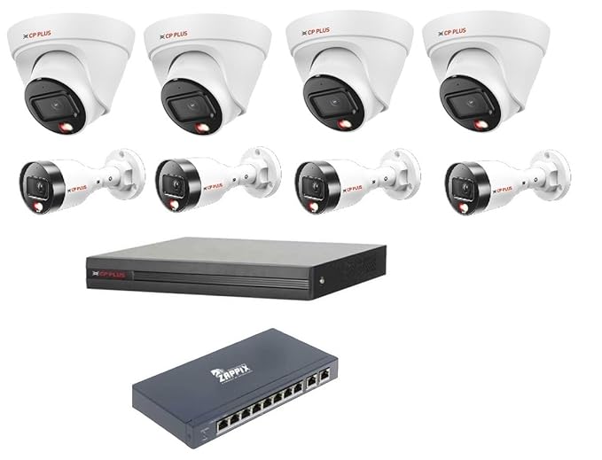 CP Plus 4MP IP Network Colour Vision in Night with Audio Recording 7 CCTV Camera Set with (8 CH NVR,Outdoor bullete-4Nos,Indoor Dome-3Nos 8 2 Port POE Switch, 2 TB Hard Drive